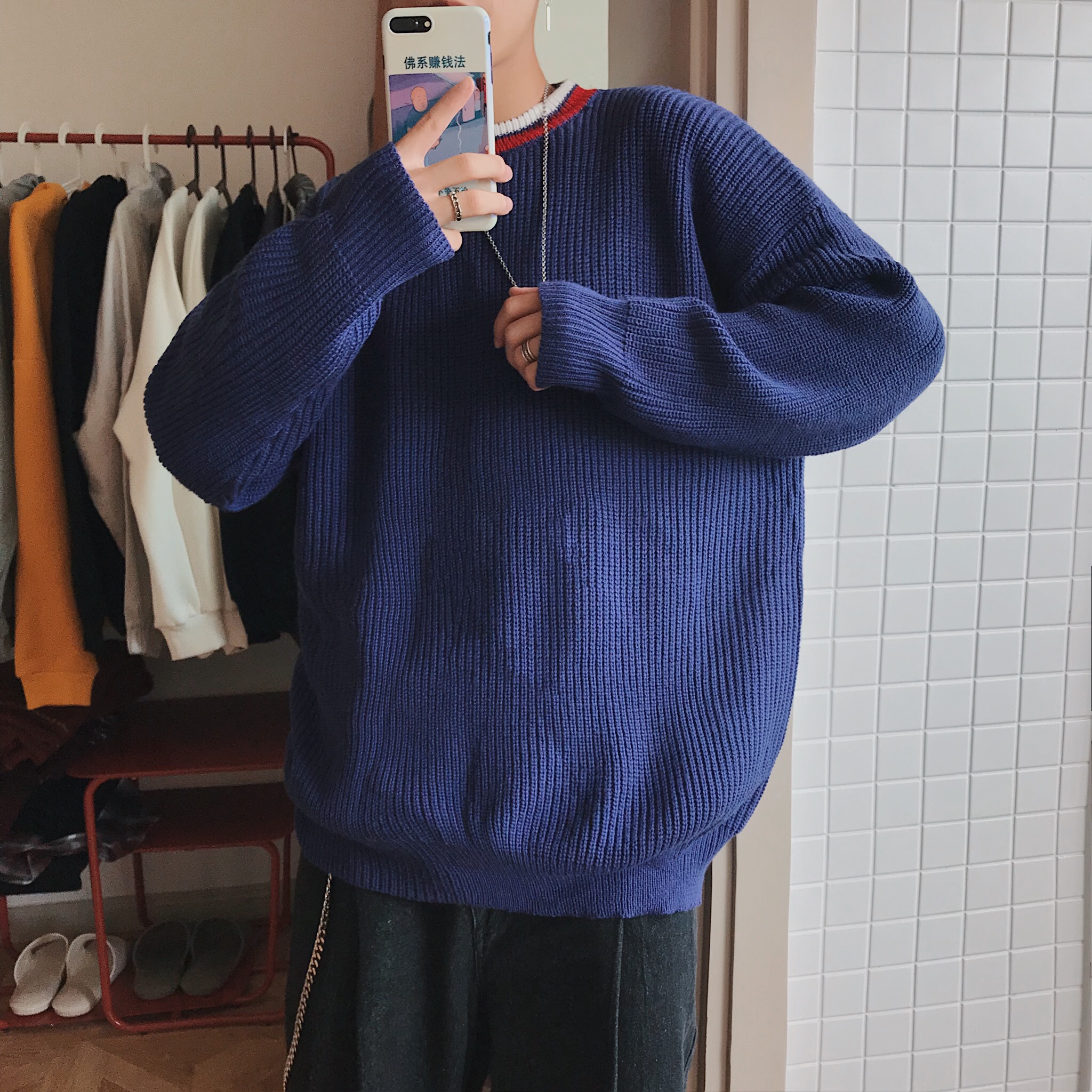 / 文藝男女店秋季日系男士毛衣韓版潮流長袖針織衫圓領網紅線衫秋裝