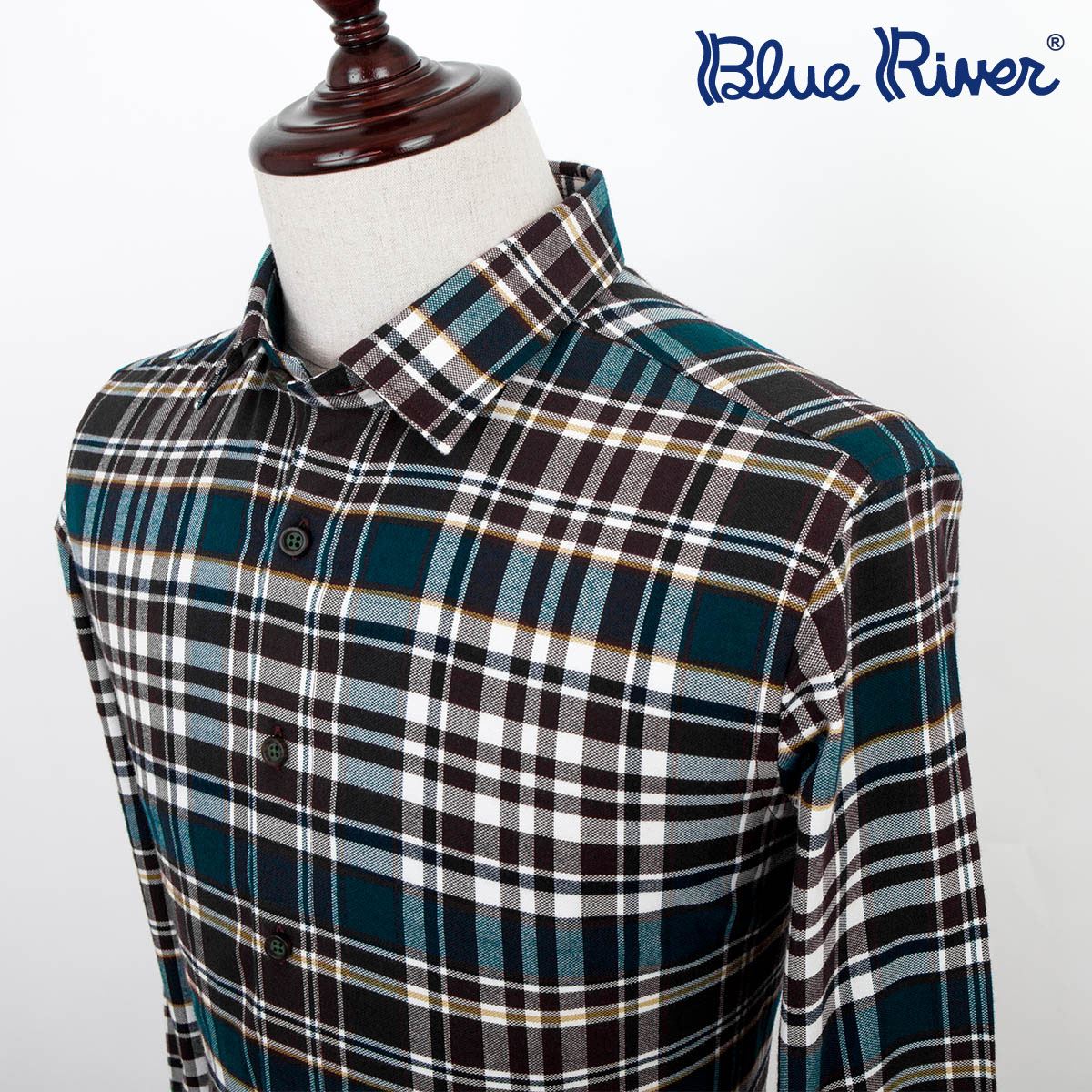 / 秋季防寒襯衣 彩色磨毛大格子保暖新型萊賽爾棉男式長袖襯衫