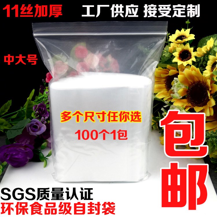 / 11絲中大號PE自封袋加厚透明密封袋封口袋食品包裝袋包郵 100個價