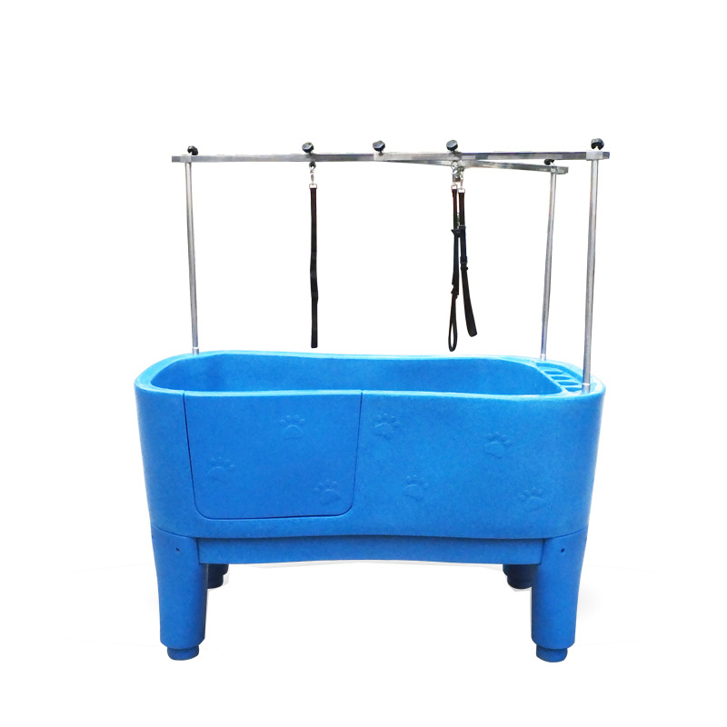H-111 為塑料浴缸,物美價廉,易清洗,有多種顏色可供選擇;浴缸底部有狗爪型壓紋,止滑效果好;浴缸腿部可根據實際需求調節高度,方便簡單;浴缸自帶皂缸,可很好的節省空間;浴缸配有保定支架,便于綁定寵物;配有額外的踏板,可供洗浴小狗時使用。可選配扶梯