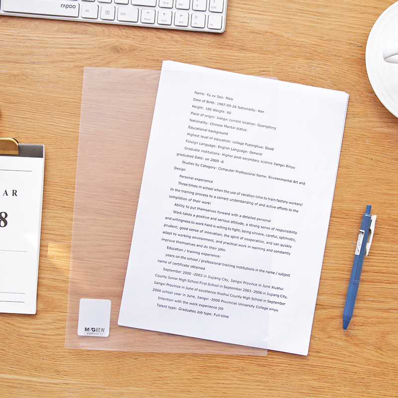 云木雜貨 L型文件夾A4文件收納套防水防塵單片夾透明單頁夾單個裝