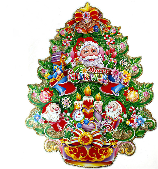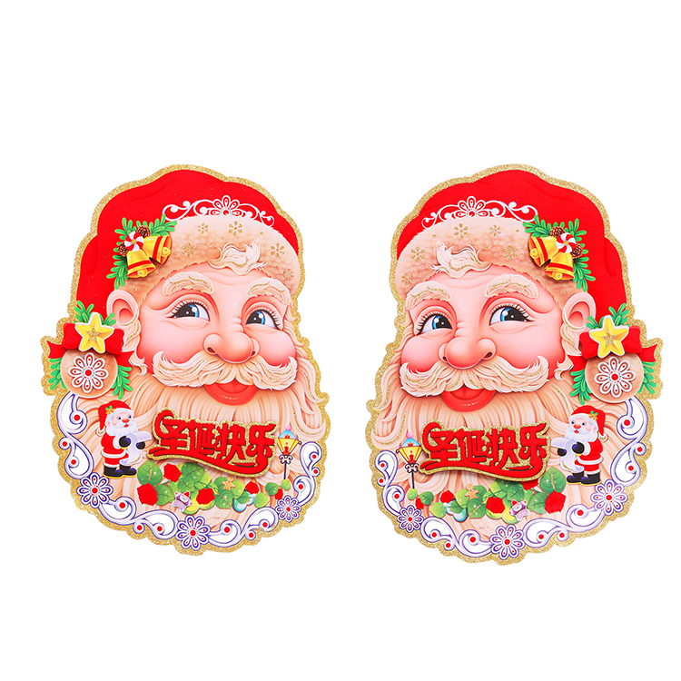 / 圣誕節裝飾圣誕節貼畫立體雙面墻壁貼畫圣誕老人頭老人鈴鐺貼畫