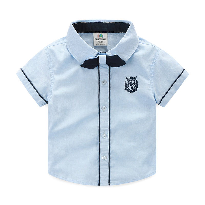 / 寶寶刺繡襯衫潮 夏裝新款男童童裝 兒童領結短袖襯衣tx-5797