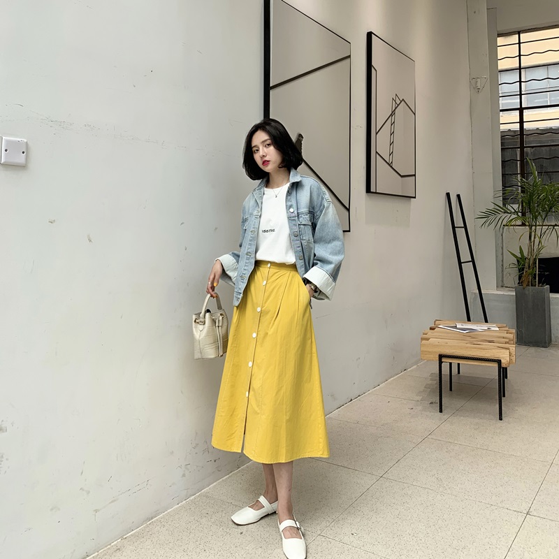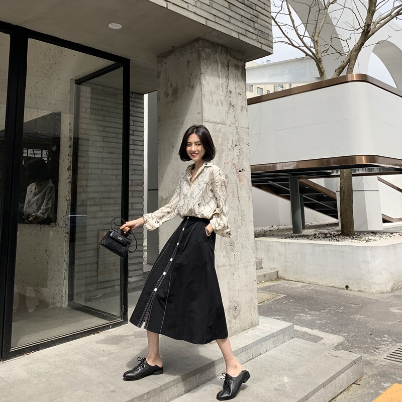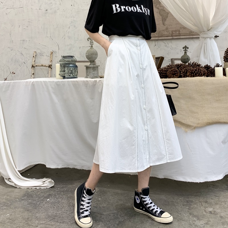 A7seven半身裙女春夏裝新款韓版寬松顯瘦高腰中長款A字黑色傘裙子