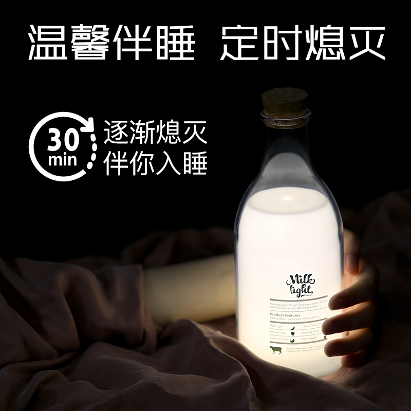 牛奶瓶夜燈伴睡燈送禮生日禮物臥室diy留言臺燈小夜燈