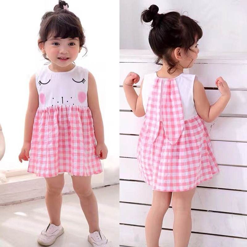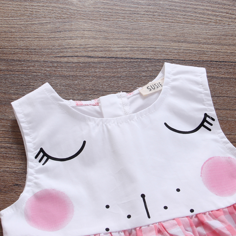 女童夏裝新款連衣裙寶寶純棉公主裙卡通格子嬰兒童背心裙子夏