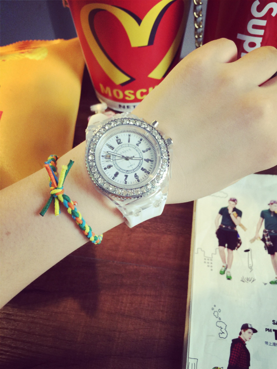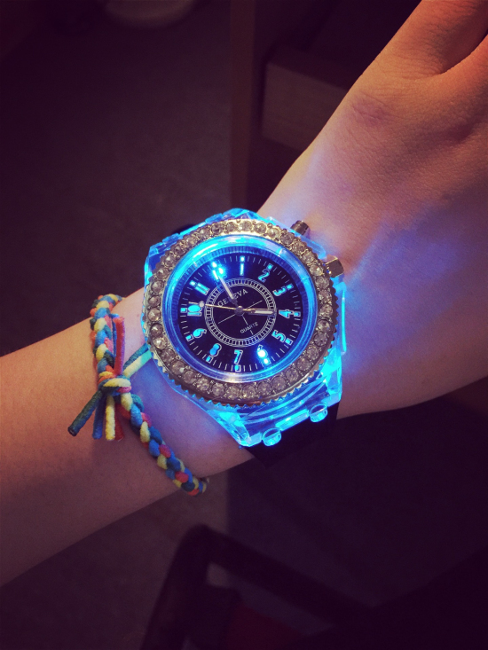 4.手表是夜光的嗎?是的。按了按鈕之后,表盤可視,每個數字、刻度清晰可見。晚上/黑暗中可以清楚的讀出時間,夜視無障礙,方便早起的學生和需要晚上看時間的親們。
