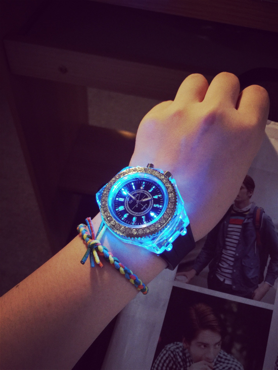 1.發光手表是什么意思?手表右上有一個按鈕,按一下,燈亮,并開始由7種顏色交替閃爍,由慢閃到急閃。燈亮時間會持續大約15秒。燈的顏色有橙/黃/天藍/紅/藍/紫/綠。