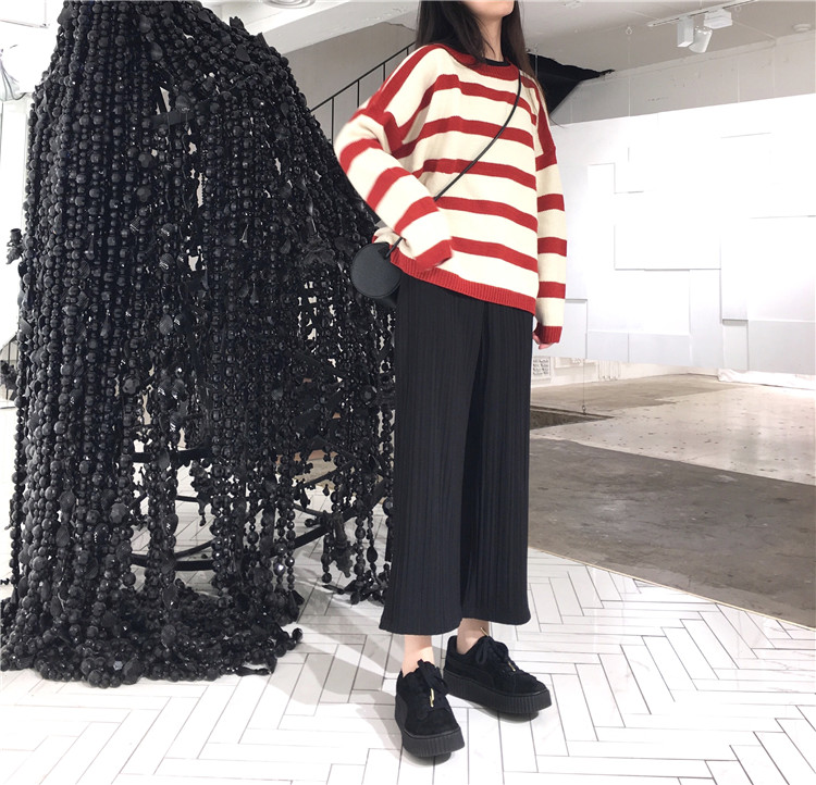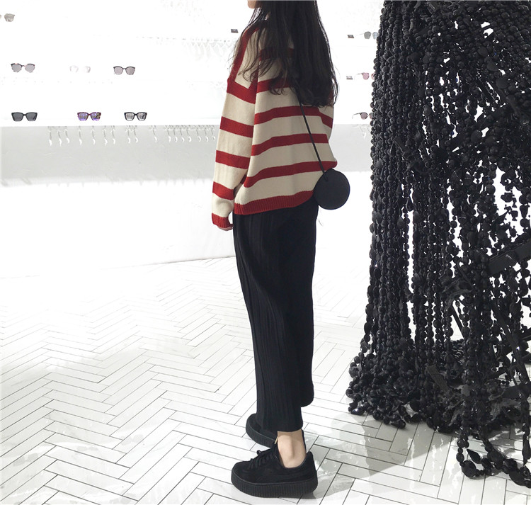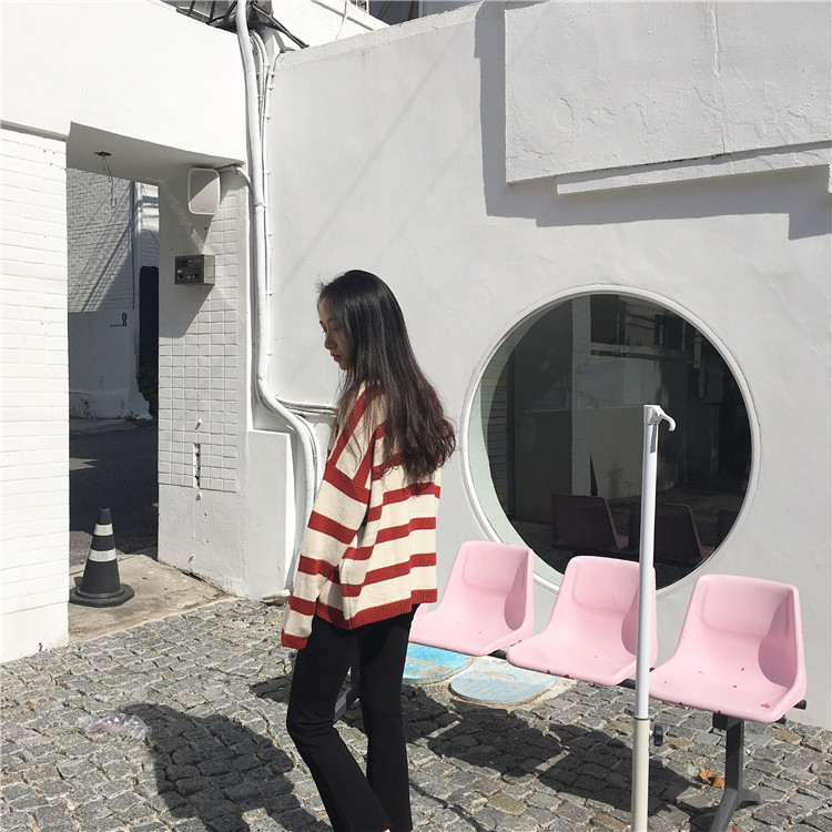 條紋的使用率最高啦,深秋可以穿在卡其色系米駝色系的開衫外套里面,