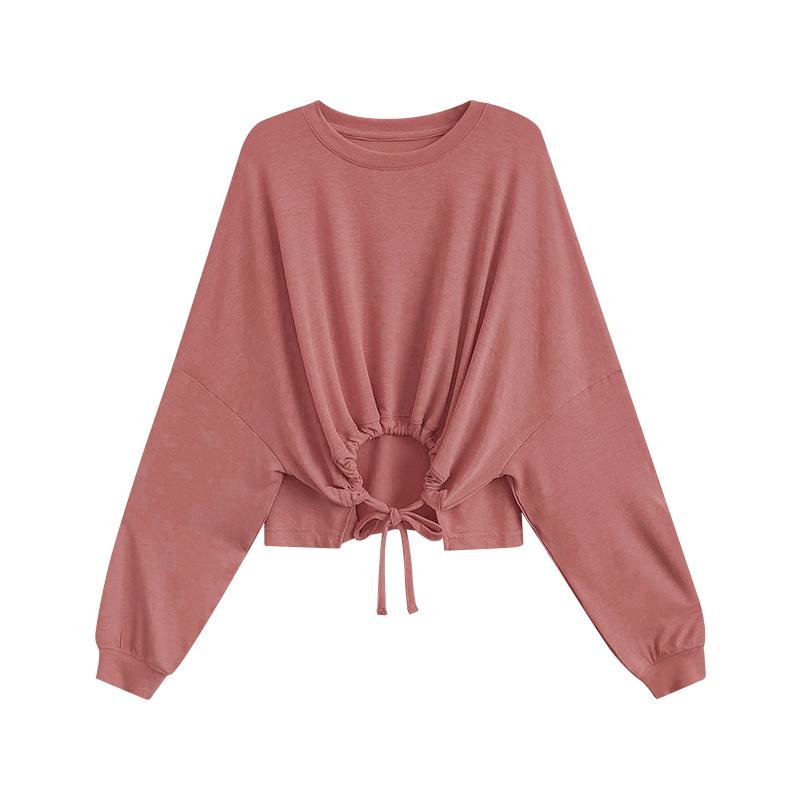 A7sevenT恤女春秋裝系帶蝙蝠長袖圓領韓版寬松顯瘦純色體恤上衣潮