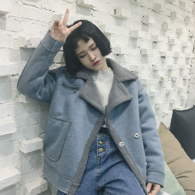 領口和袖口都有露出羊羔毛來 看起來軟綿綿的 特別可愛