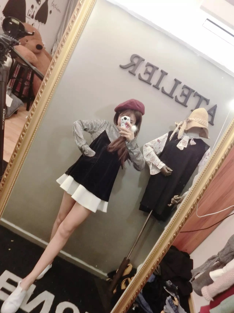 新款百搭亮絲T恤上衣+黑色吊帶背心女春季外穿打底衫兩件套潮