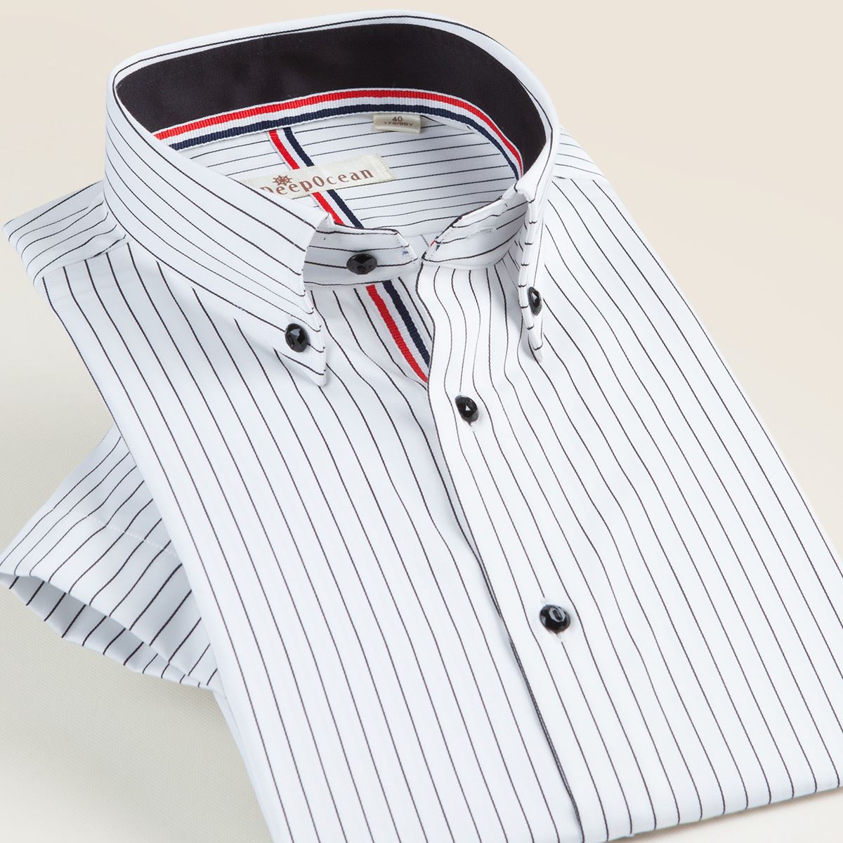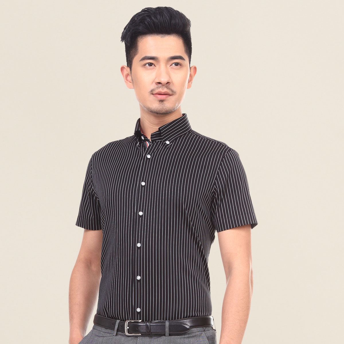 / 夏季新品絲光棉條紋男士短袖襯衫純棉韓版時尚商務男裝襯衣潮