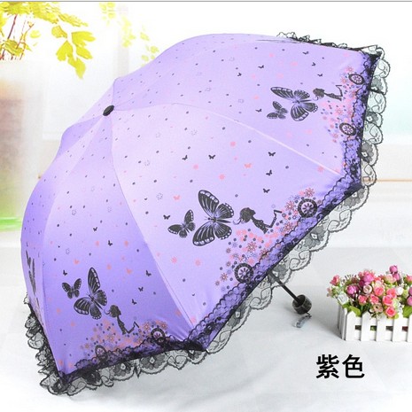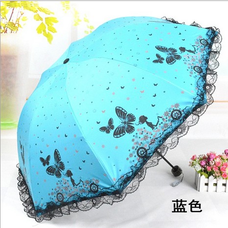 超強防曬黑膠晴雨傘蕾絲女兩用太陽傘遮陽傘防紫外線三折疊超輕小