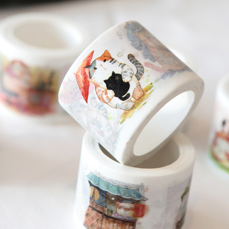 / 云木雜貨 萌寵和紙膠帶手繪可愛動物diy手賬相冊裝飾手撕貼紙35mm