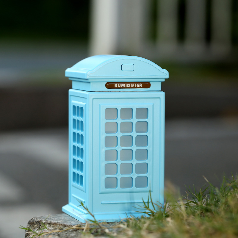 云木雜貨 創意桌面電話亭USB迷你加濕器 靜音夜燈復古空氣噴霧器