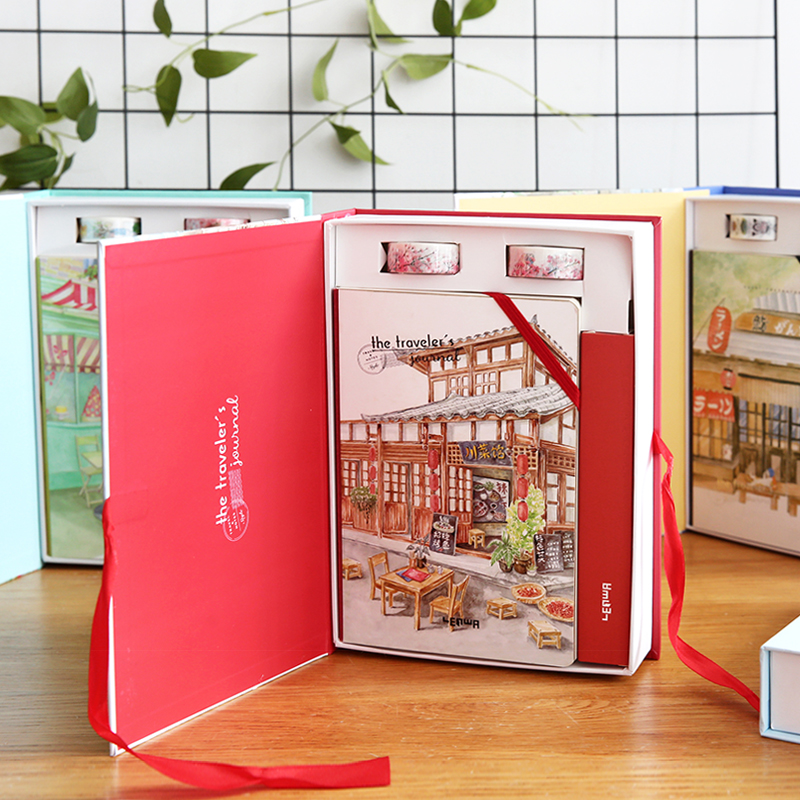 云木雜貨 手帳本套裝禮盒裝女生小清新手賬本磁扣本彩頁插畫本子