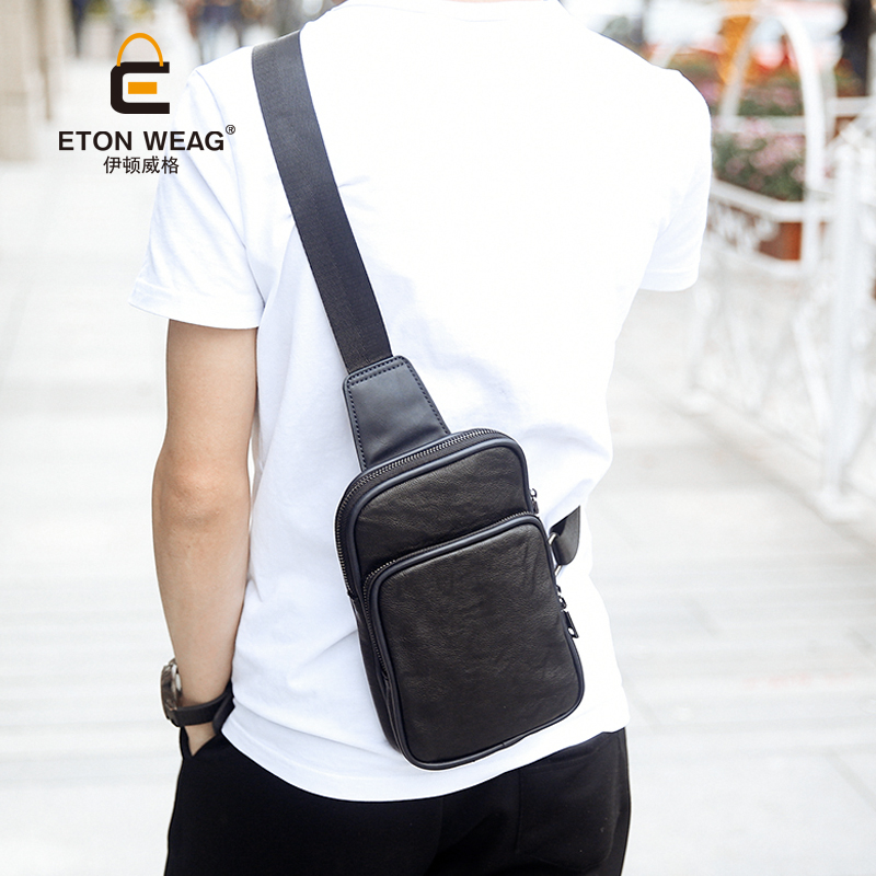 / 時尚潮流英倫街頭潮流單肩包男休閑撞色軟皮斜挎包肩挎包男款胸包
