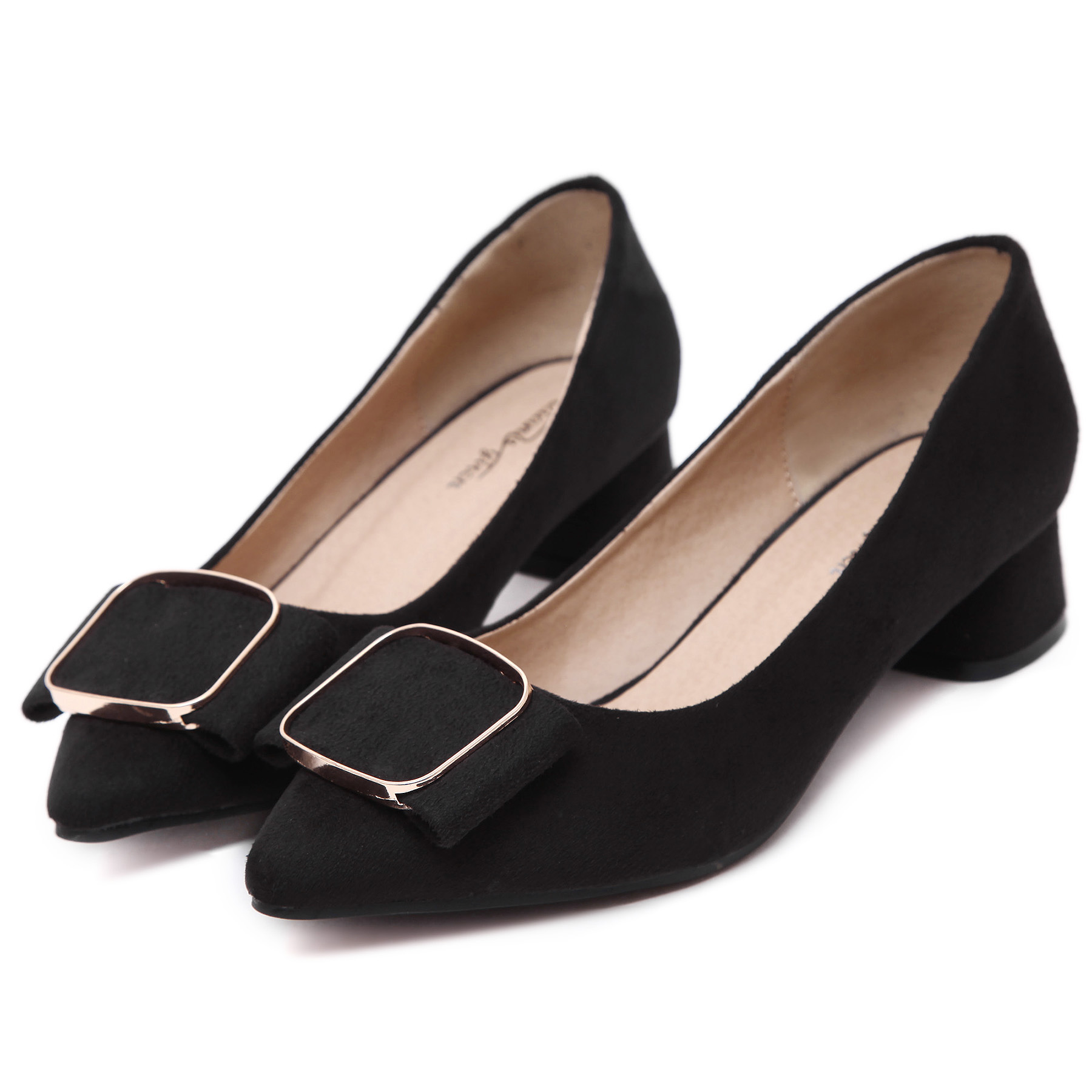 / 女單鞋春尖頭淺口女鞋黑色職業工作粗跟中高跟鞋
