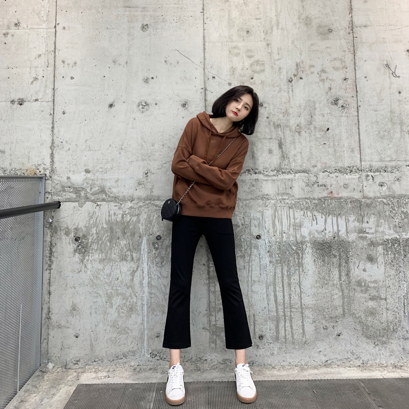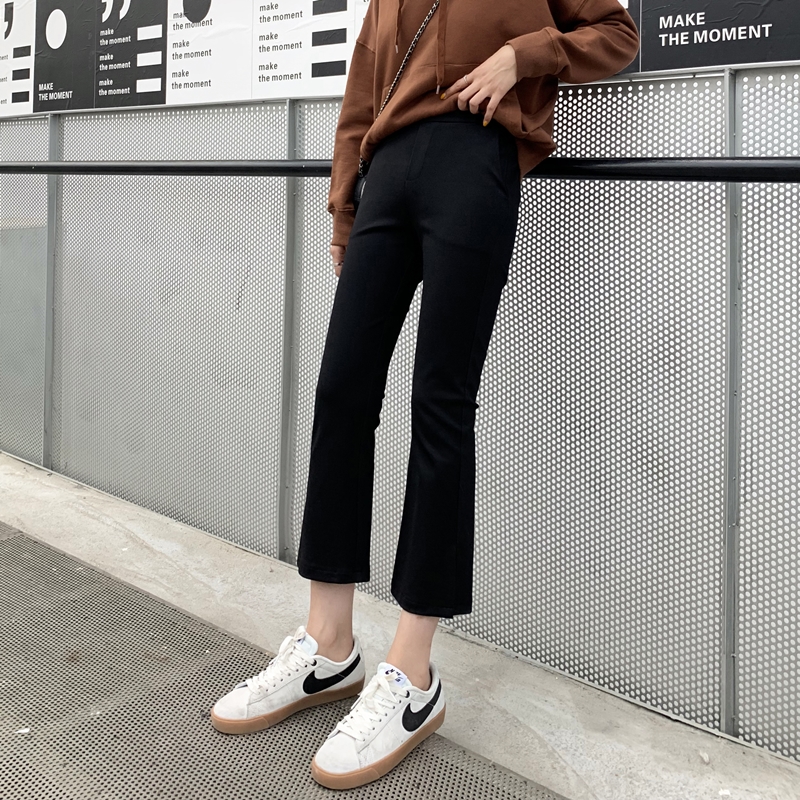A7seven微喇褲女側開叉春夏裝新款九分韓版高腰顯瘦黑色休閑褲子