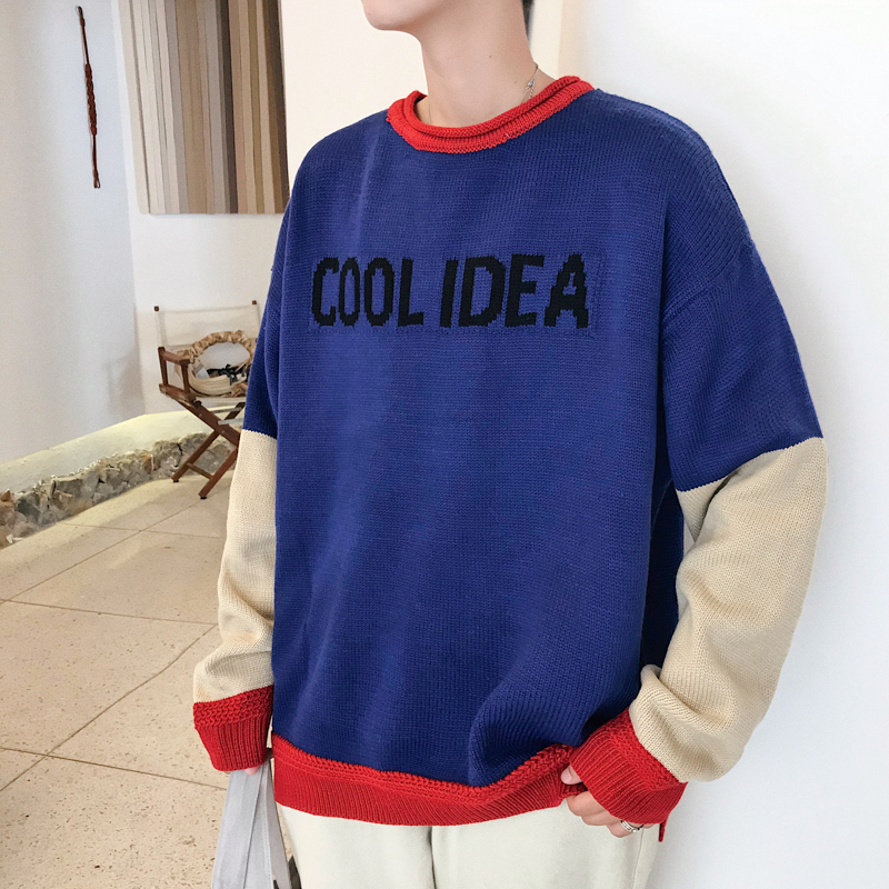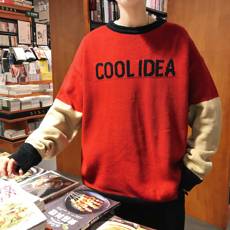 / 文藝男女店秋季圓領針織衫男士韓版潮流套頭秋裝寬松毛衣網紅外套
