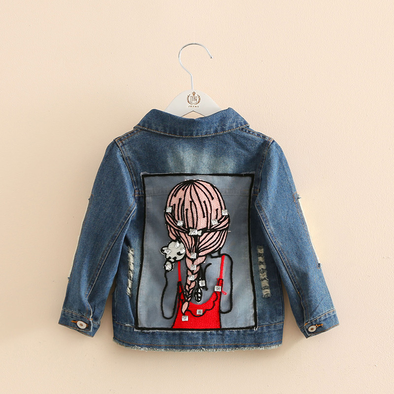 / 兒童毛邊牛仔衣 春裝新款女童童裝女孩背影貼圖外套wt-4993