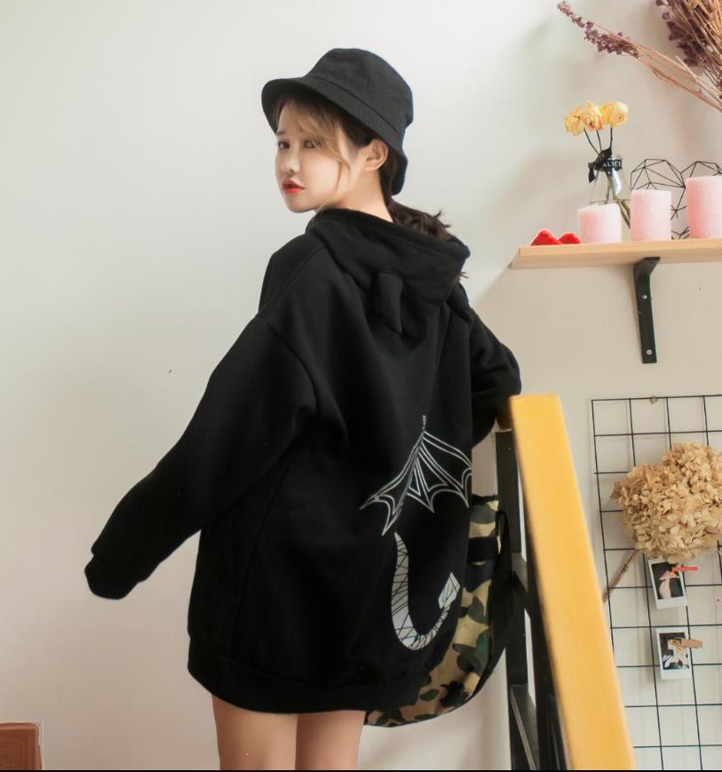韓國原宿風冬款萌萌噠卡通小惡魔加絨加厚印花學生帽衫衛衣女