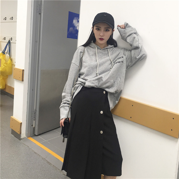 高腰百褶的設計拉長身高比列 (實物顏色是黑灰色 偏黑基本上屬于黑色)