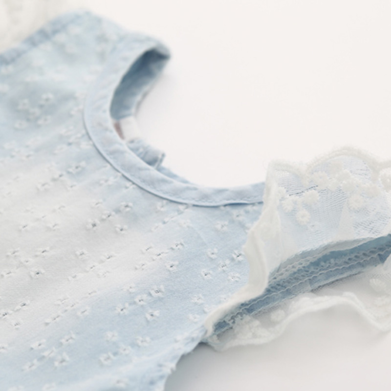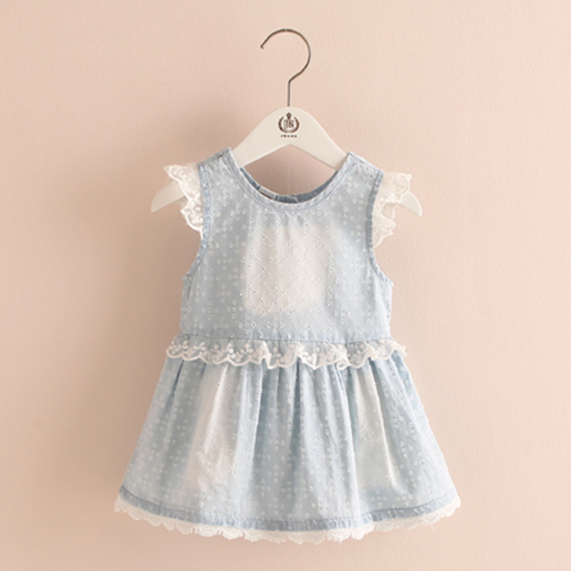 / 兒童牛仔飛袖裙衫 夏裝韓版新款女童童裝蕾絲裙衣 潮qz-2853