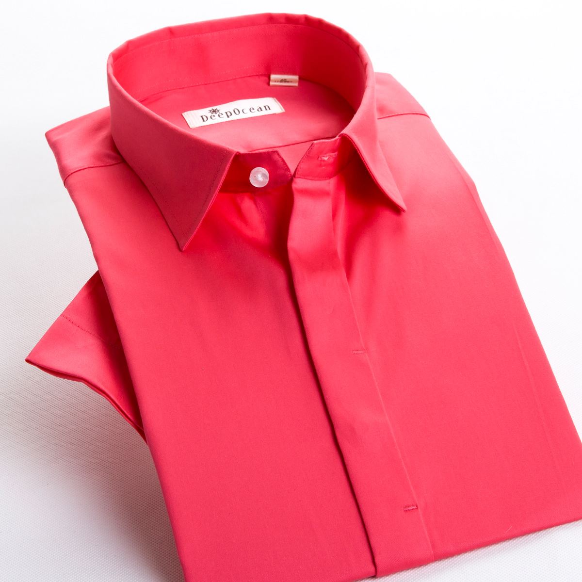 / 夏新款雙絲光棉短袖襯衫男式修身韓版糖果色休閑薄款半袖襯衣