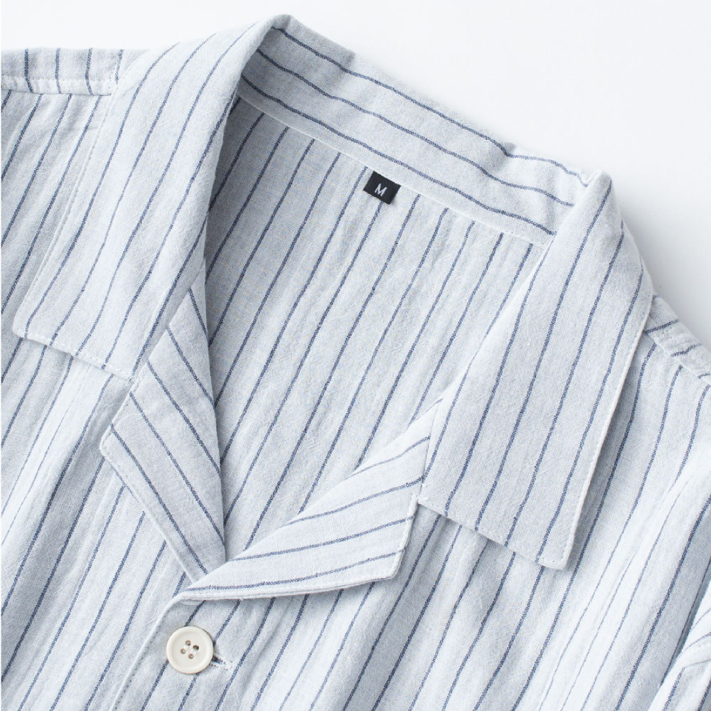 8839良品全棉條紋水洗雙層布家居服套裝 男女款 舒適透氣自然簡樸