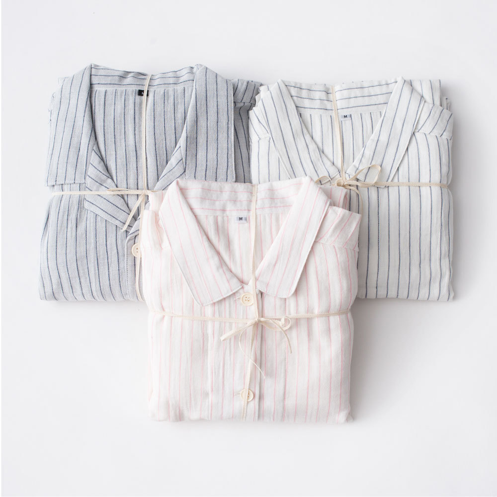 / 8839良品全棉條紋水洗雙層布家居服套裝 男女款 舒適透氣自然簡樸