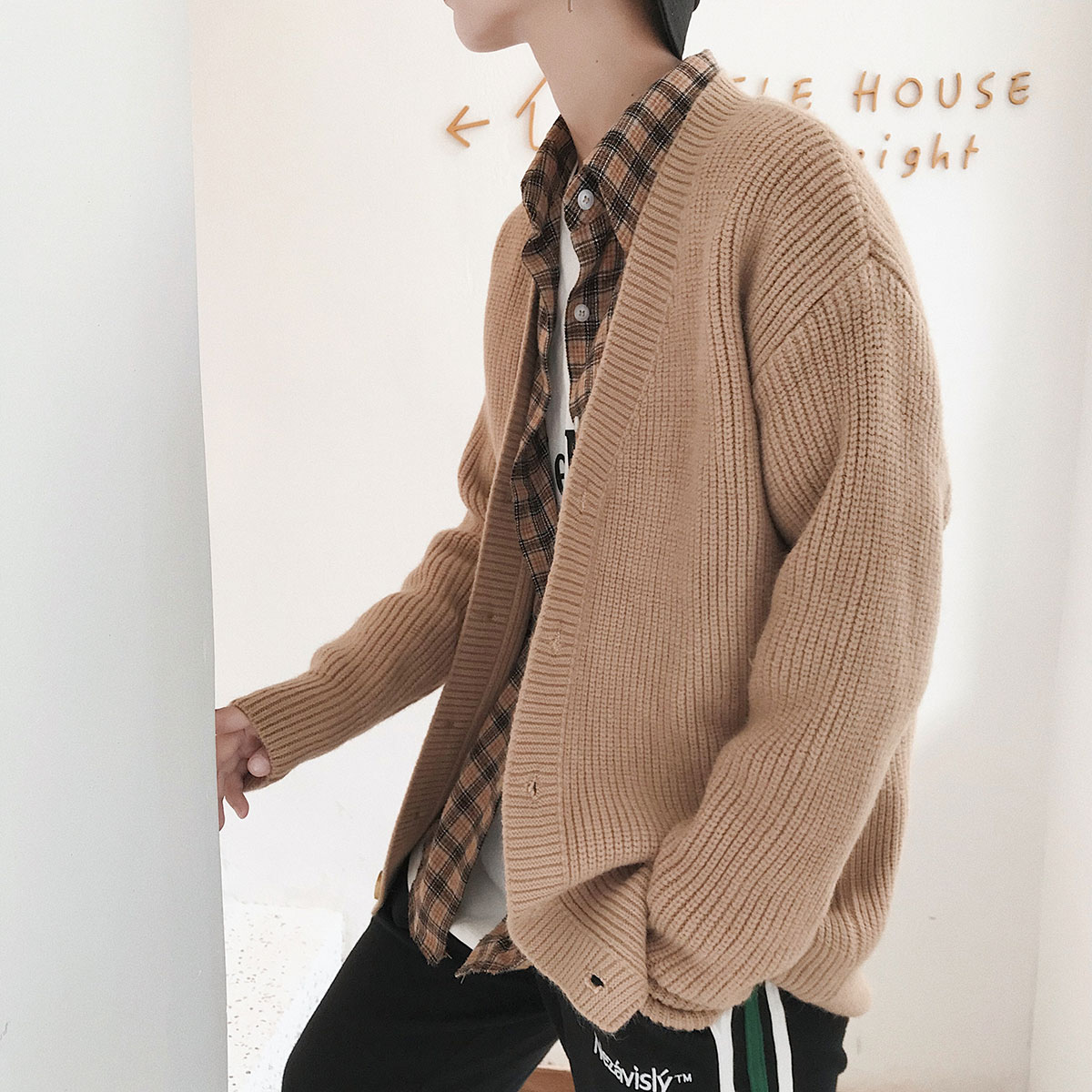 / 新款男士開衫針織衫寬松休閑潮牌男裝秋季潮流百搭上衣日系衣服男