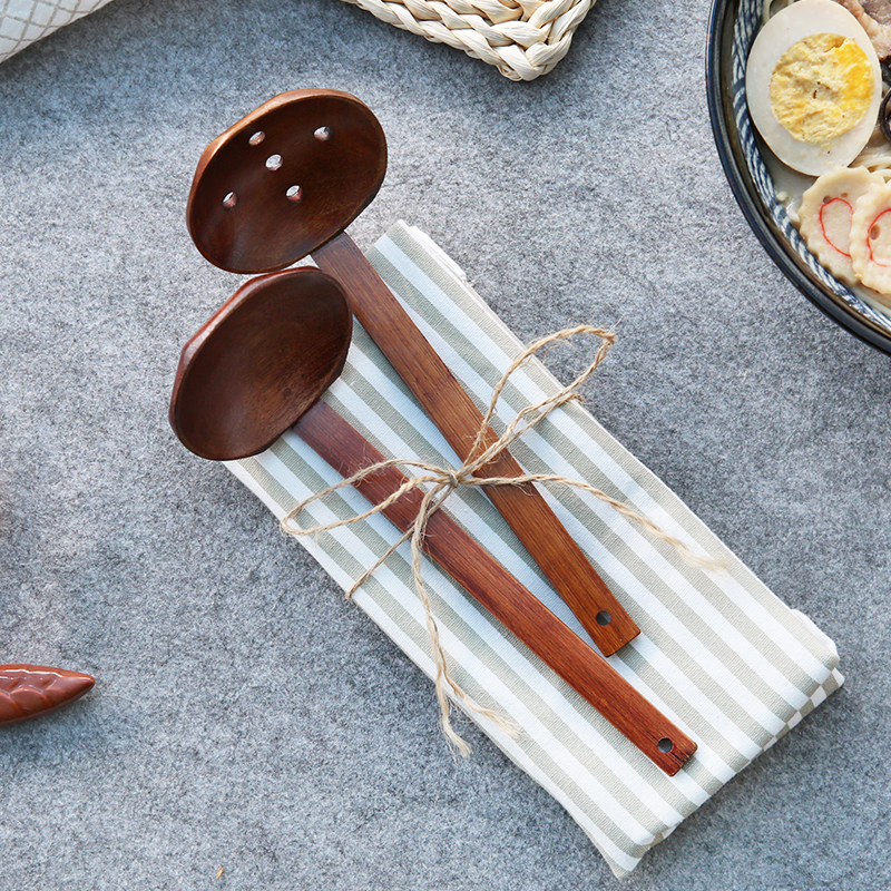 云木雜貨 日式竹柄木質拉面勺火鍋勺湯勺漏勺原木長柄帶孔木勺子