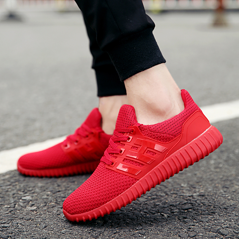 / 秋季新款韓版潮流男鞋子百搭運動休閑鞋青少年小紅鞋飛織潮鞋透氣