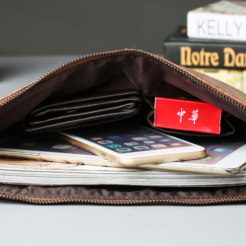 鉚釘男士手拿包時尚潮流復古手包單肩斜跨手抓包IPAD包瘋馬PU皮