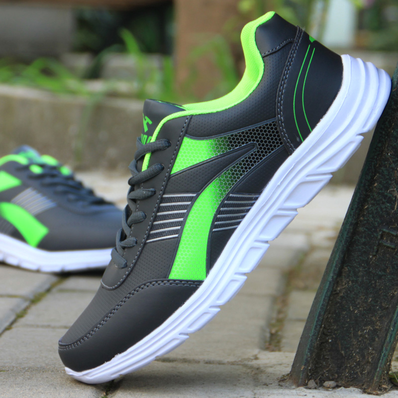 男士春季輕便運動鞋韓版潮流學生跑步休閑鞋防水潮鞋皮面男鞋板鞋
