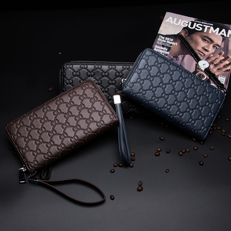 正品男士長款拉鏈錢包韓版商務休閑印花多卡位手拿包青年手包男