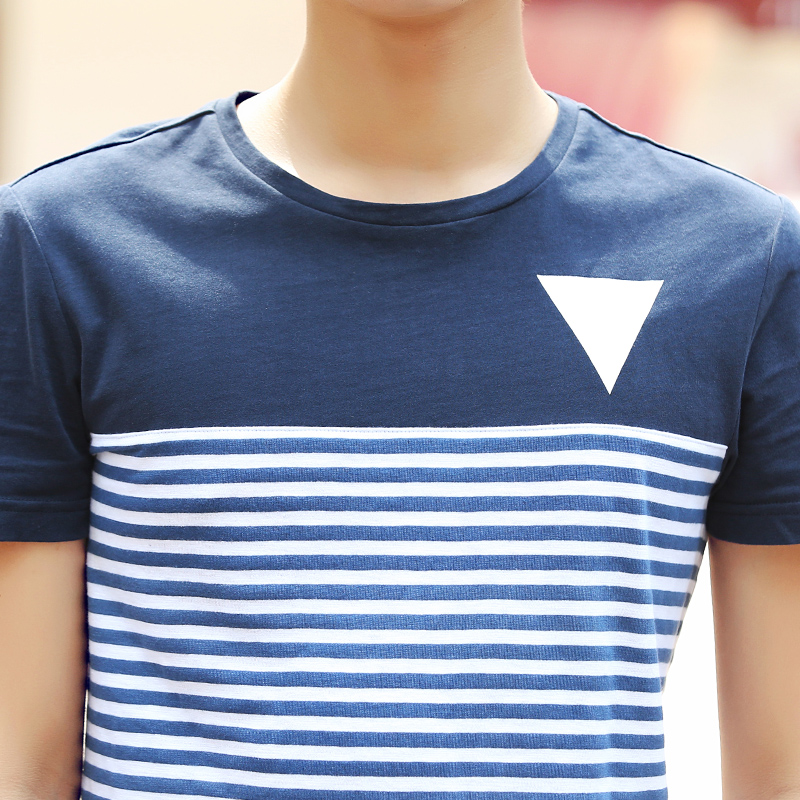 夏裝新品 T恤 男短袖 潮 韓版條紋青年短袖T恤 男圓領