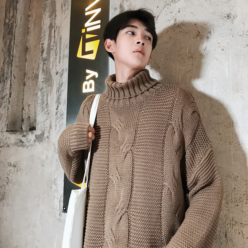 休閑寬松ins超火的港風chic冬季潮流高領針織衫毛衣男士情侶秋季