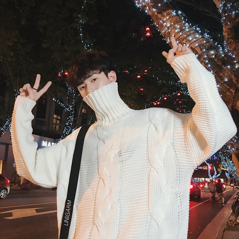 / 休閑寬松ins超火的港風chic冬季潮流高領針織衫毛衣男士情侶秋季