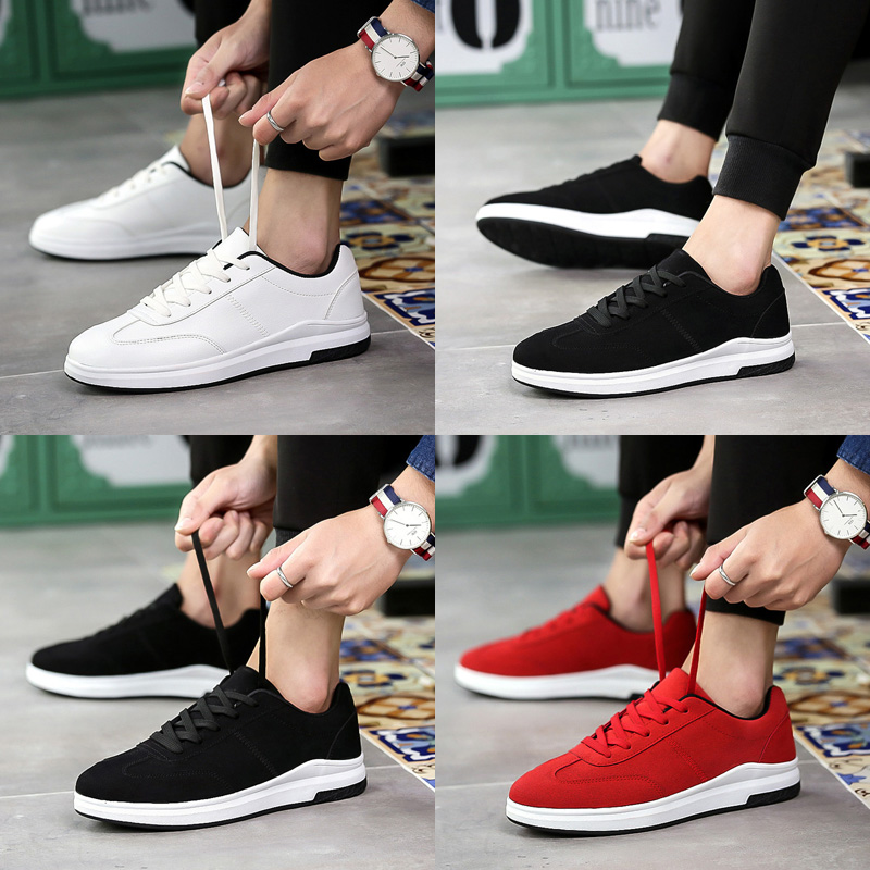 / 春季運動板鞋韓版潮流紅色男鞋子新款百搭休閑黑色鞋英倫潮鞋