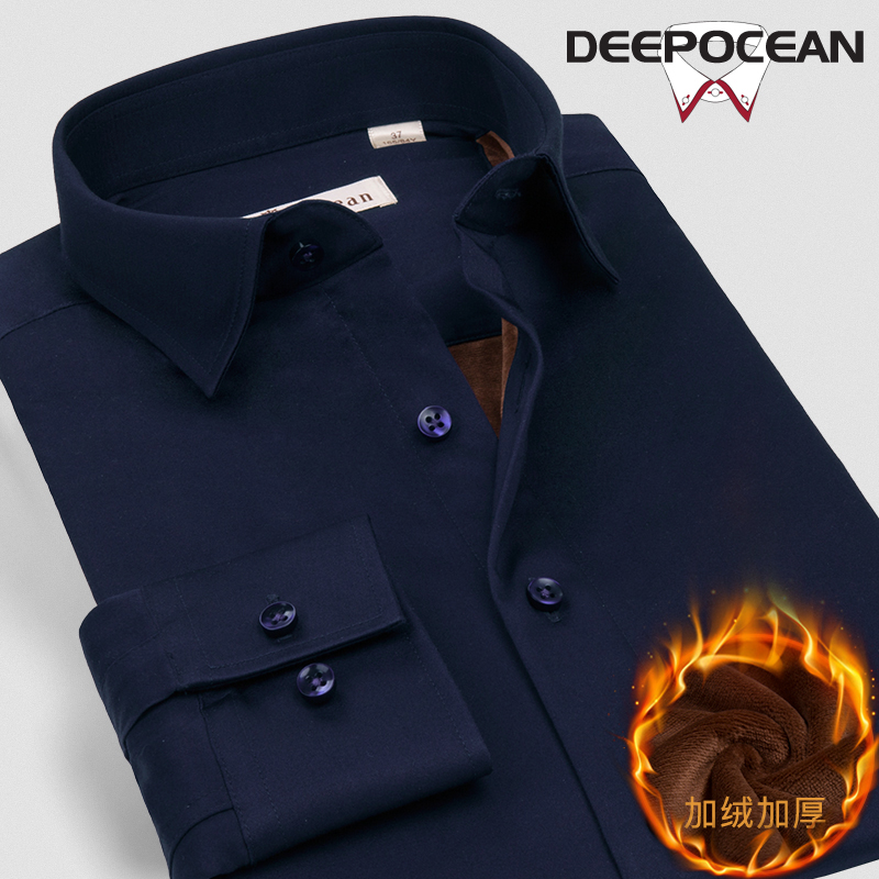 / 冬季加絨加厚保暖襯衫男長袖男士絲光棉商務休閑修身韓版純棉襯衣