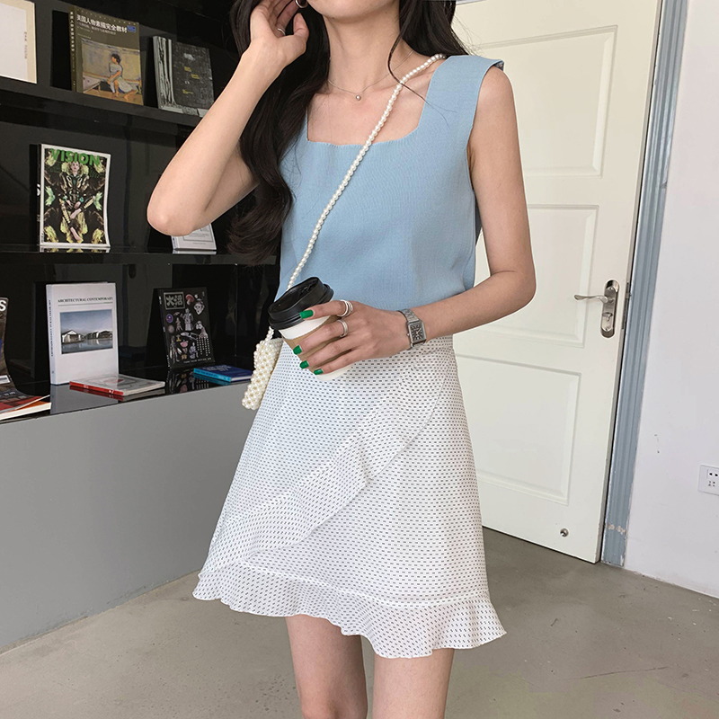 A7seven半身裙女夏季新款韓版高腰顯瘦波點拼接荷葉邊時尚A字短裙