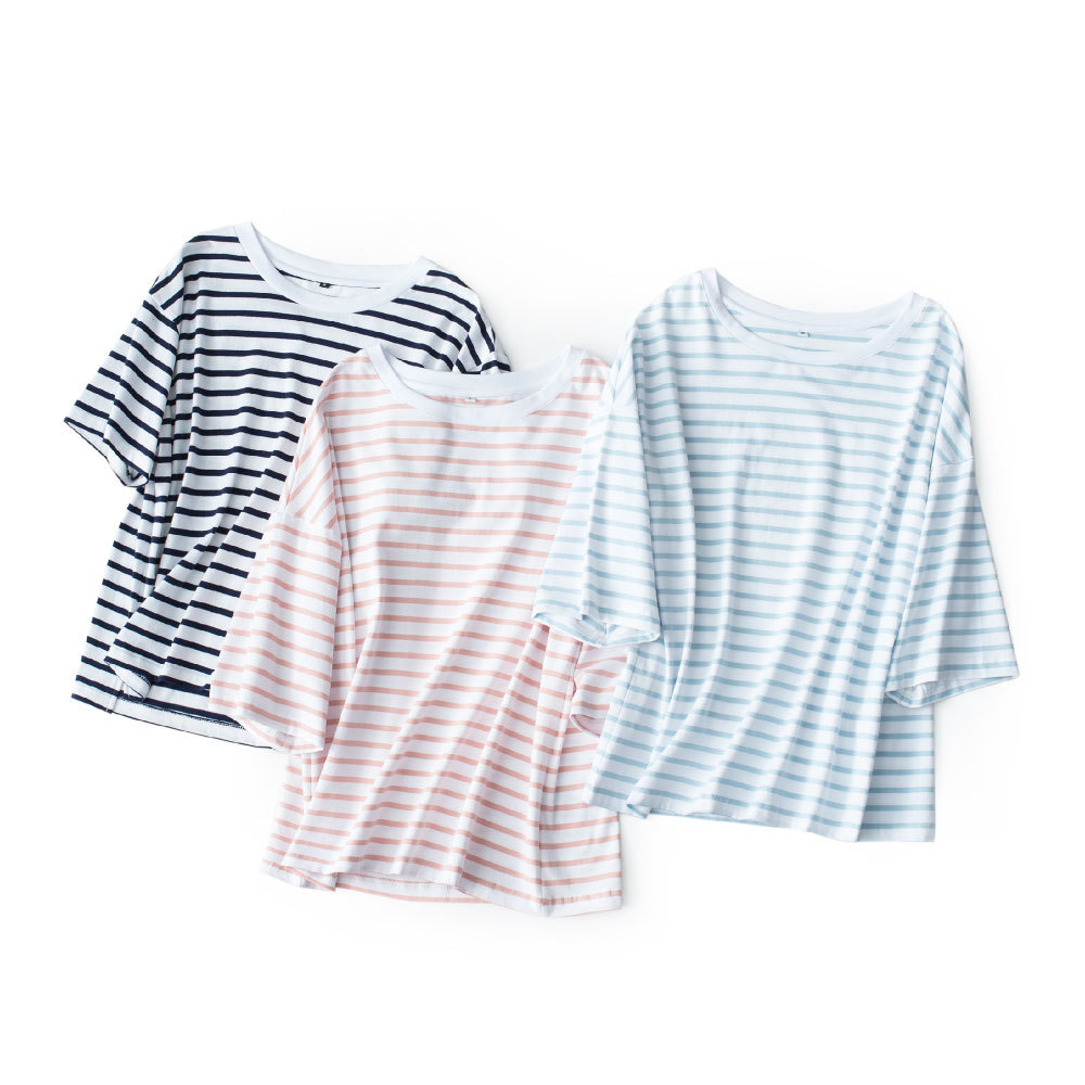 8801良品針織全棉短袖長褲套裝 寬松落肩上衣配小腳褲 簡約休閑