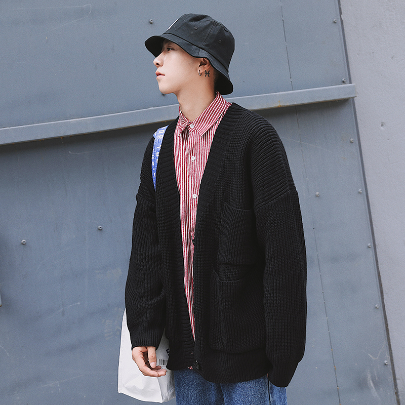 文藝男女店男士毛衣男冬季2018新款原宿風針織衫韓版潮流開衫外套