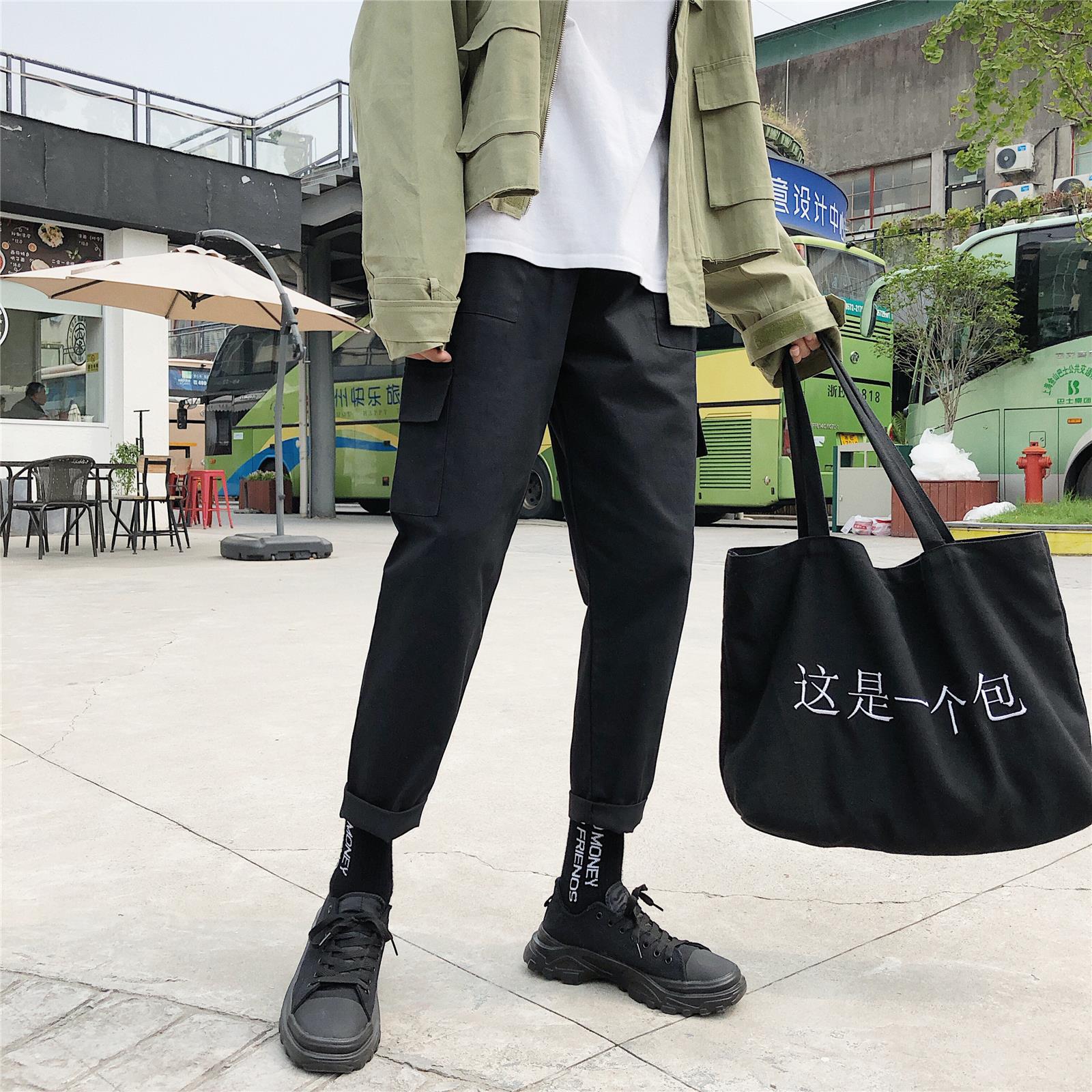 文藝男女店男士寬松直筒褲子秋季韓版潮流ulzzang工裝褲休閑褲