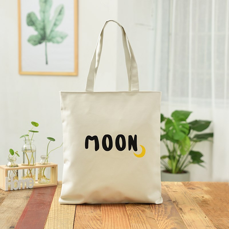 字母手提帆布包女單肩包韓國簡約文藝學生書包白色環保購物帆布袋