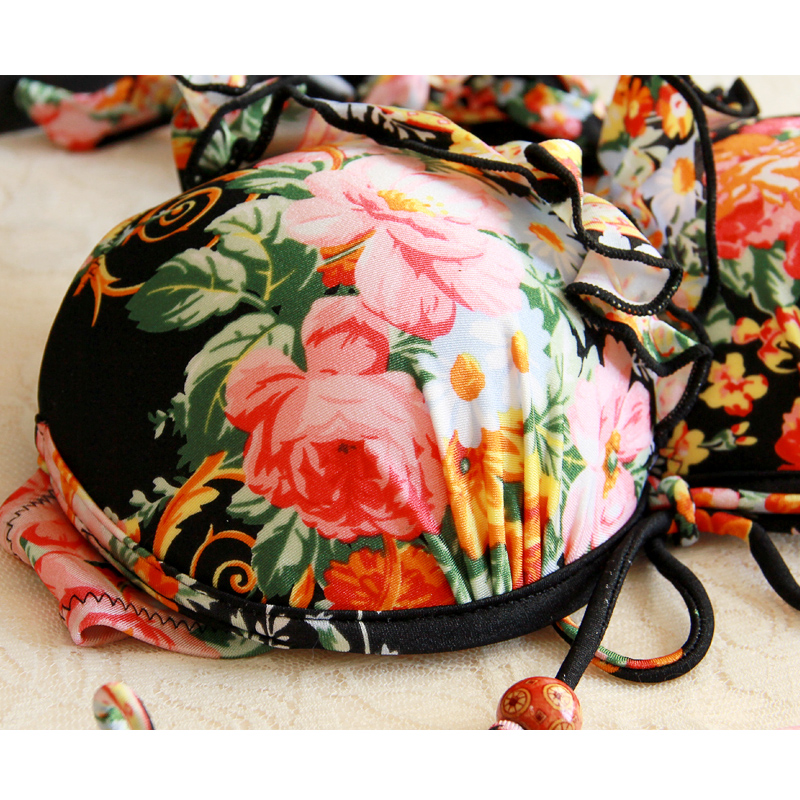 花卉印花鋼托聚攏比基尼泳衣女三件套送披紗溫泉泳裝