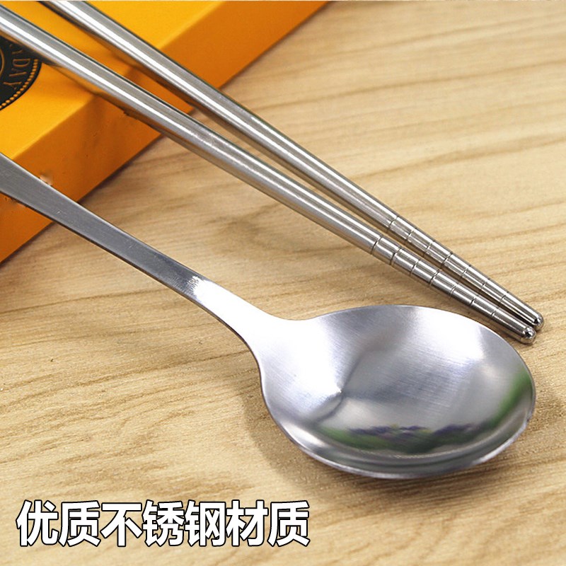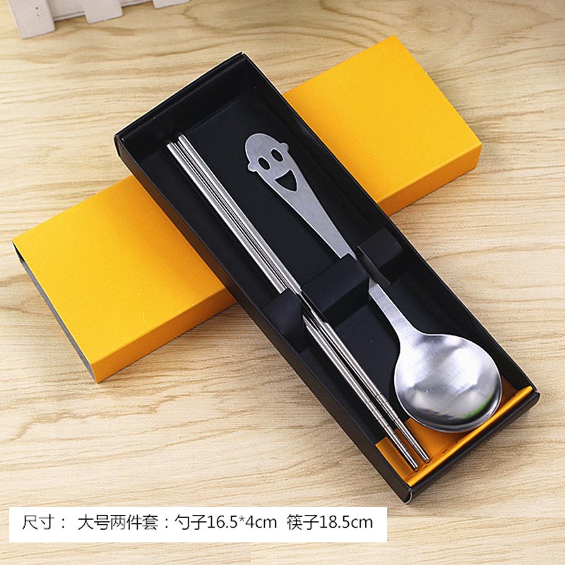 笑臉鏤空圓勺旅行便攜不銹鋼餐具 筷子勺子套裝 光滑成人韓國可愛